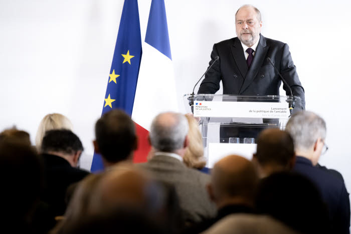 « Changer de modèle, cela veut dire : je me réapproprie mon procès, j’en maîtrise la durée, a continué Éric Dupond-Moretti. En Angleterre, au Québec, un très grand nombre d’affaires dont le juge est saisi fait l’objet d’un règlement amiable. Mon objectif est clair : réduire par deux les délais de nos procédures civiles d’ici 2027. Nous allons, tous en ensemble, mettre au vert tous les feux de l’amiable. »
